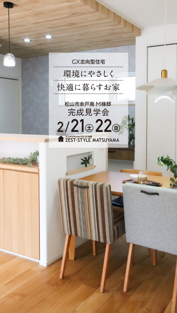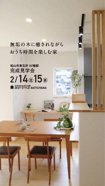 2026年2月14日(土)・15日(日) 松山市東石井にて「 無垢の木に癒される おうち時間を楽しめる家」完成見学会を開催します! [見どころポイント] ■多様的に使える畳コーナーも、家族がゆったりと過ごせるLDK ■足 […]