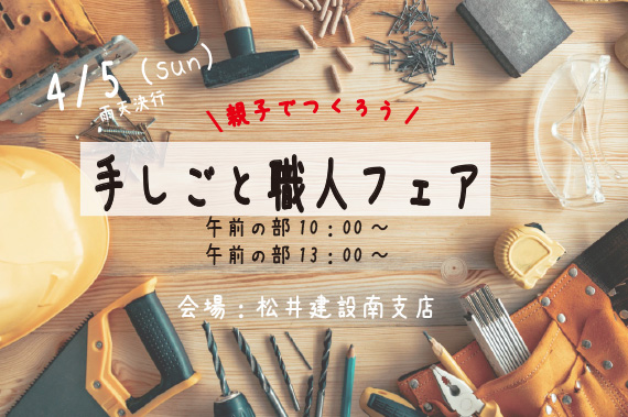 2026年4月5日(日) ご好評の「手しこど職人フェア」 松井建設南支店体感工房にて開催します! 職人さん当社スタッフと一緒に子供も大人も楽しめる企画です 「DIYって楽しそうだけど準備が面倒だし、手順や寸法も不安…」 […]
